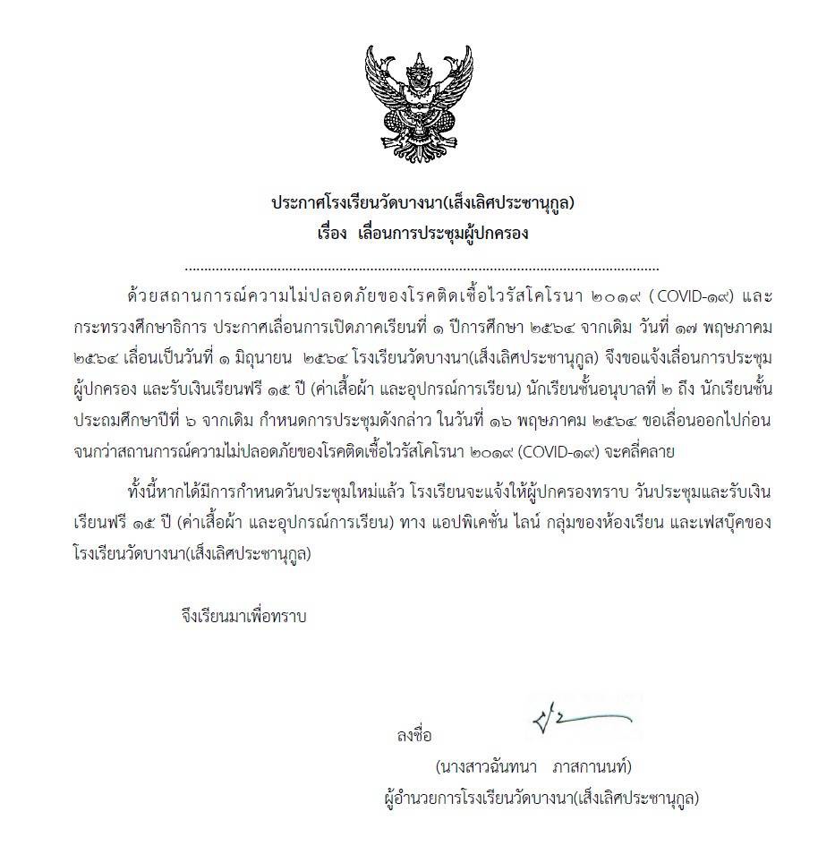 ประกาศเลื่อนการเปิดภาคเรียนที่ 1/2564