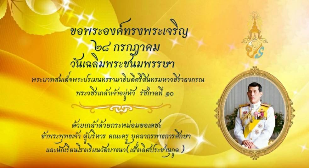 ถวายพระพรพระบาทสมเด็จพระปรเมนทรรามาธิบดีศรีสินทรมหาวชิราลงกรณพระวชิรเกล้าเจ้าอยู่หัว รัชกาลที่ 10