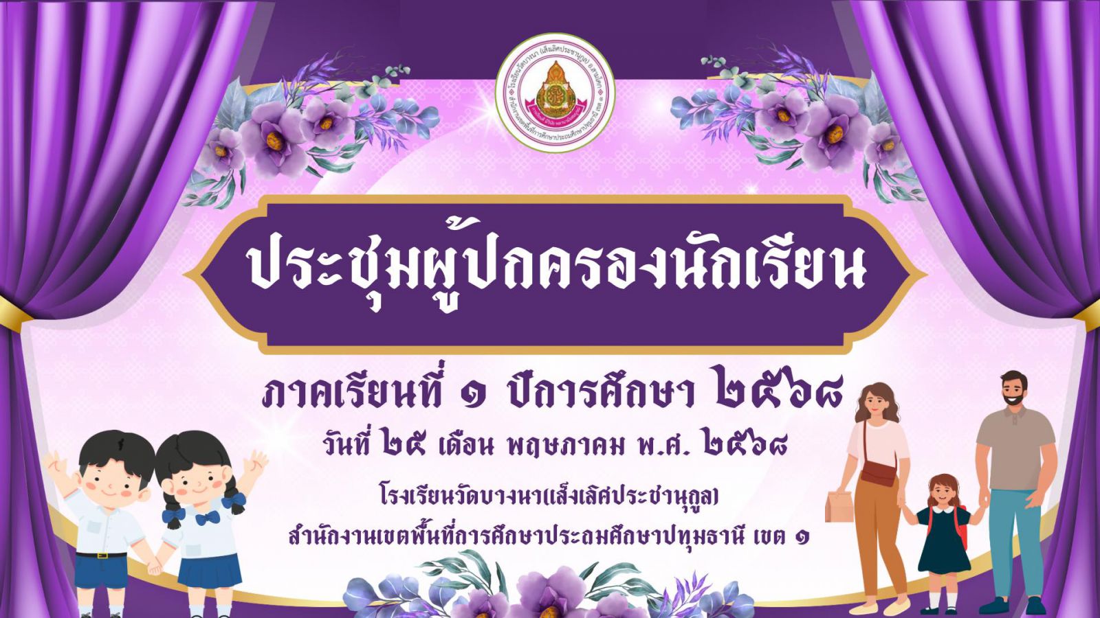ประชุมผู้ปกครองนักเรียน ภาคเรียนที่ 1 ปีการศึกษา 2568 ในวันอาทิตย์ที่ 25 พฤษภาคม พ.ศ.2568 เวลา 09.00 น.