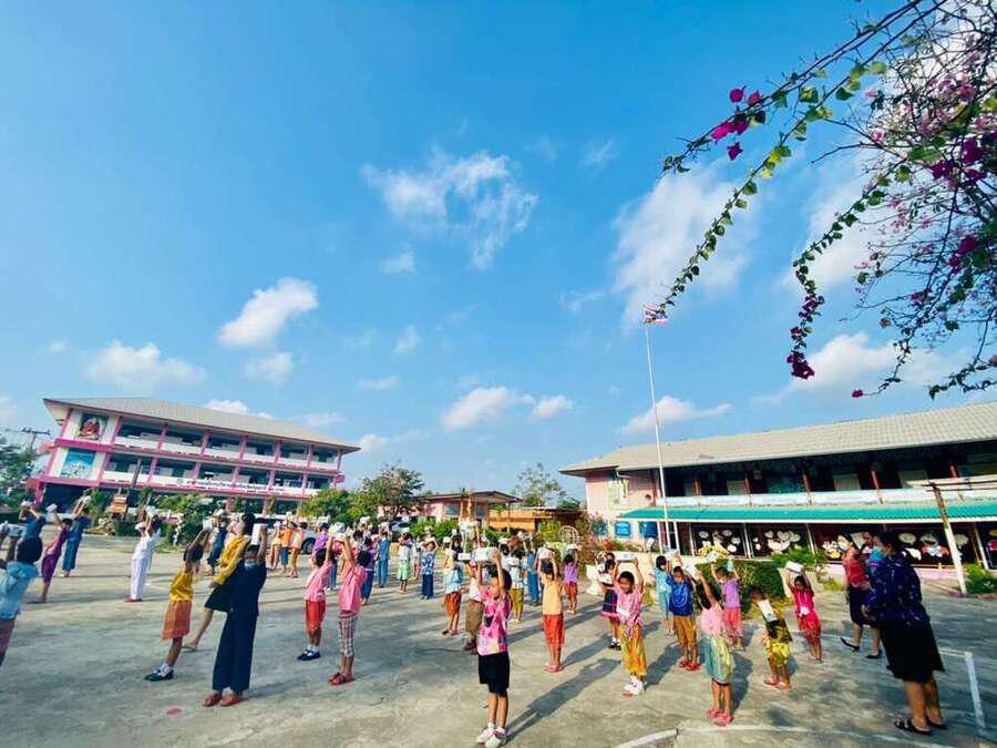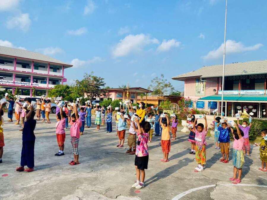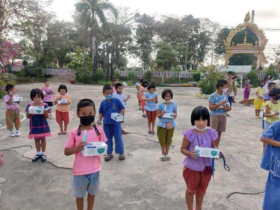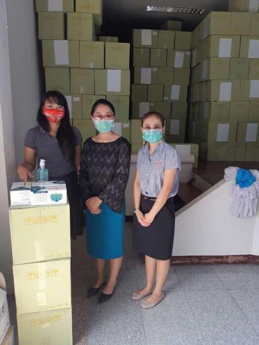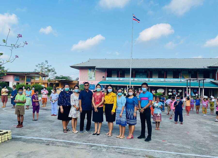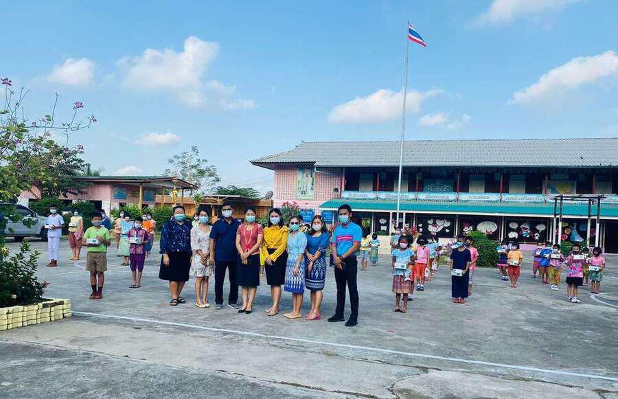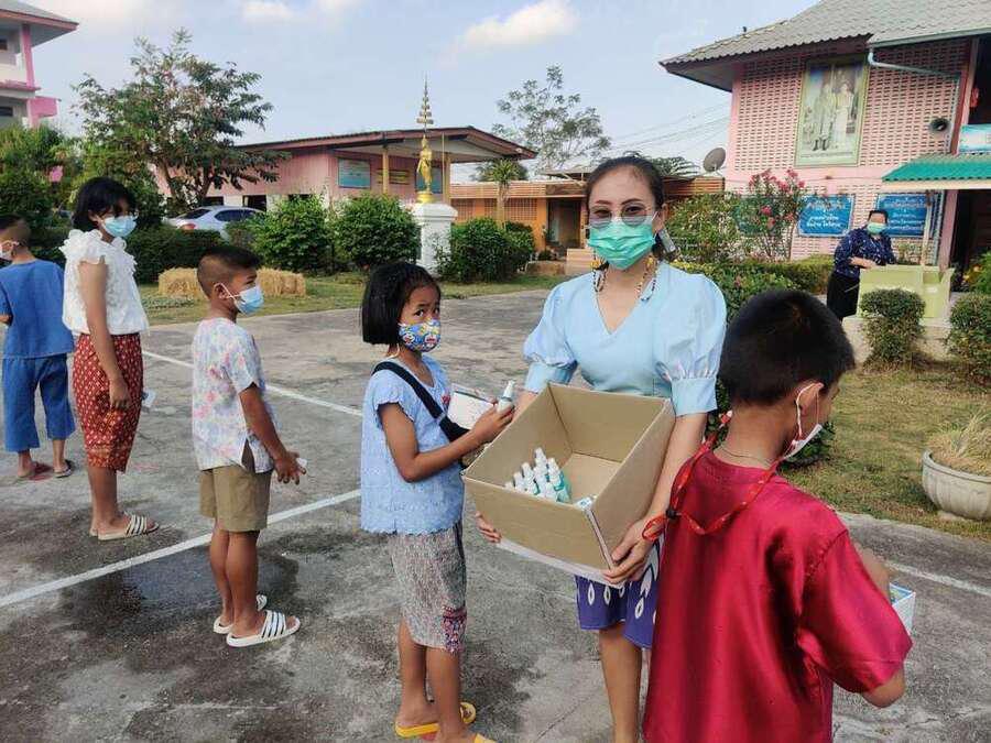 กิจกรรมรับเจลแอลกอฮอล์ หน้ากากอนามัย และมอบแจกเจลแอลกอฮอล์และหน้ากากอนามัยให้กับนักเรียน
